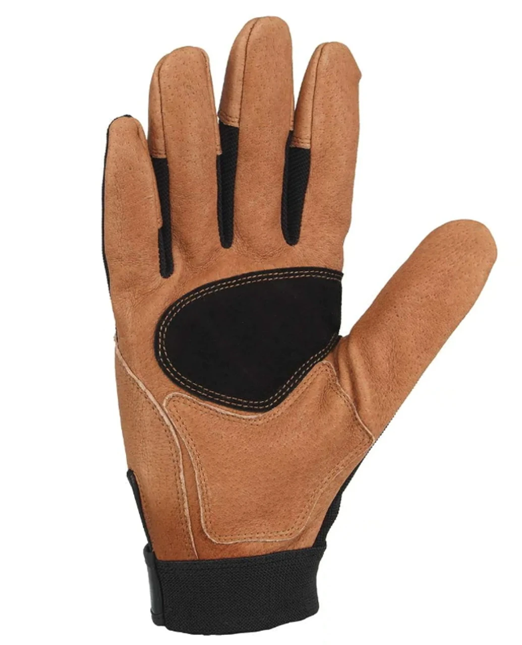 - Textured, breathable spandex with leather palm and cowhide reinforcement