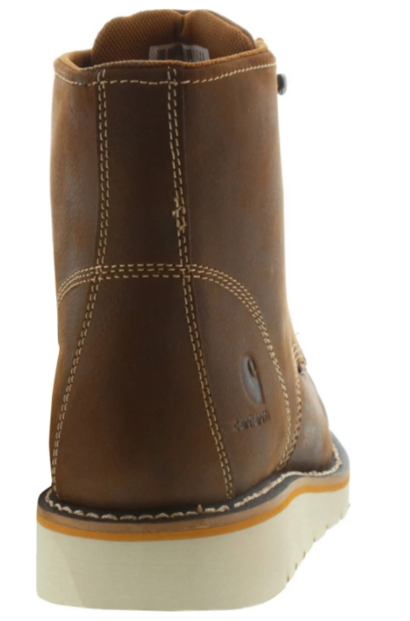 These waterproof Carhartt work boots will keep your feet dry and comfortable throughout the workday. Made from dark brown oil tanned leather in a 6″ lace up design, these boots feature Storm Defender waterproof breathable protection to keep your feet dry no matter the elements. The rubber wedge outsole provides added grip so you can stay focused on the task at hand.