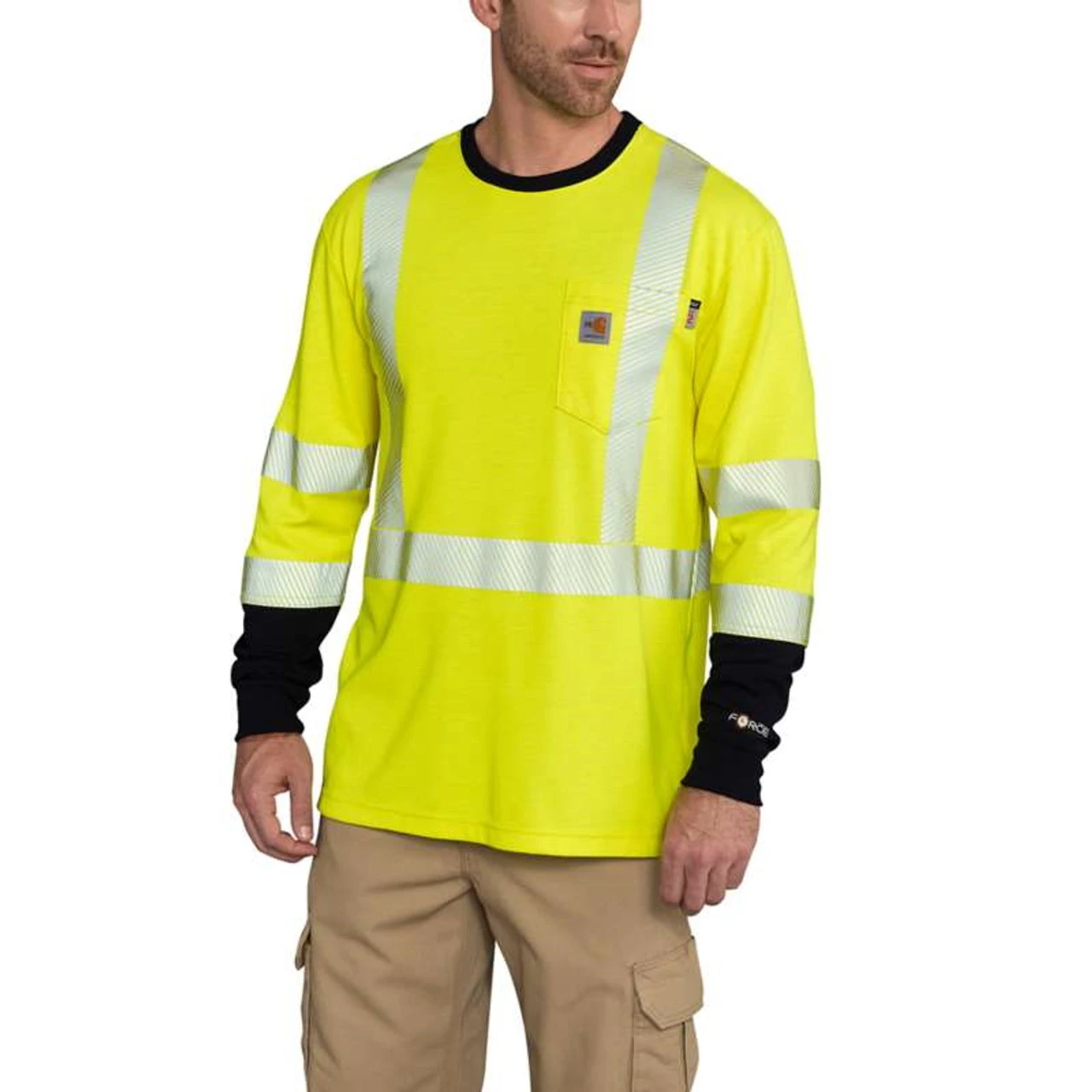- Carhartt FR and NFPA2112/CAT 2 labels sewn on left pocket