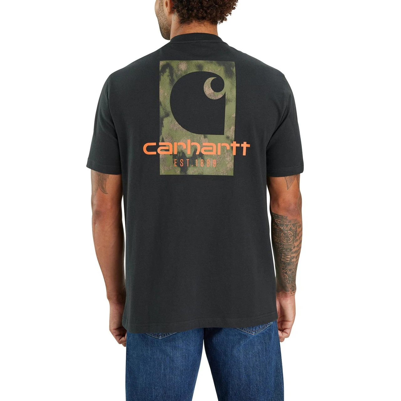 Carhartt loves camo. This men’s short sleeved t-shirt is made with a heavyweight cotton and features a camo Carhartt logo on the back.